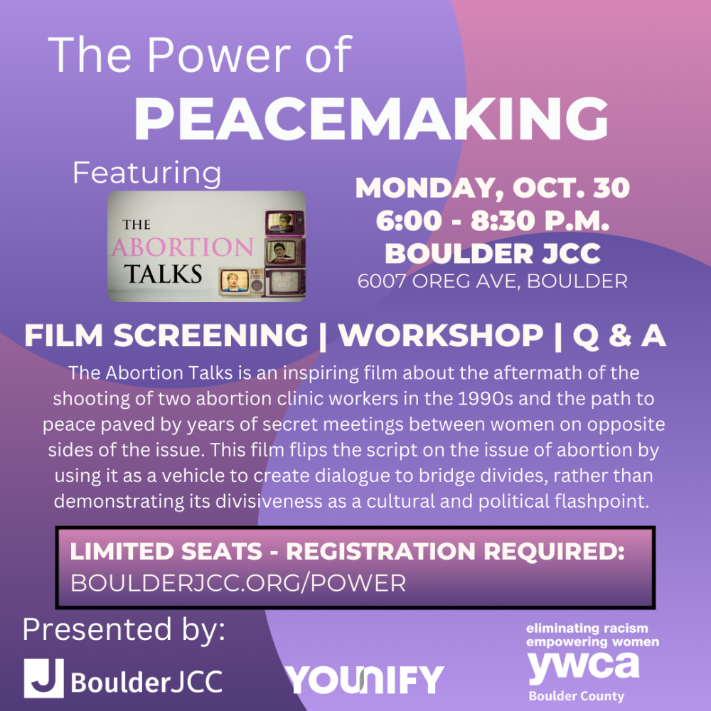 This engagement is brought to you in partnership with YOUnify, the YWCA of Boulder, and the Boulder JCC. It will be followed by a mini-session on how to approach difficult conversations and a Q and A with the filmmaker. If you have any questions, please feel free to contact me.
